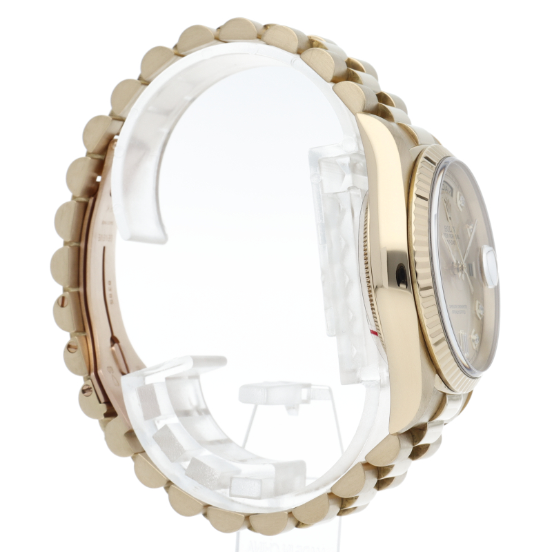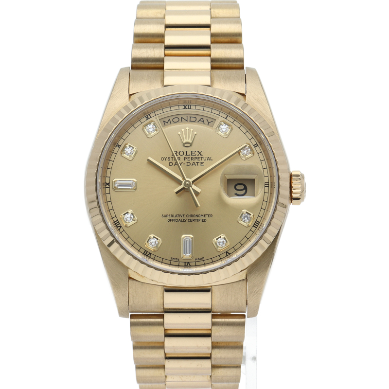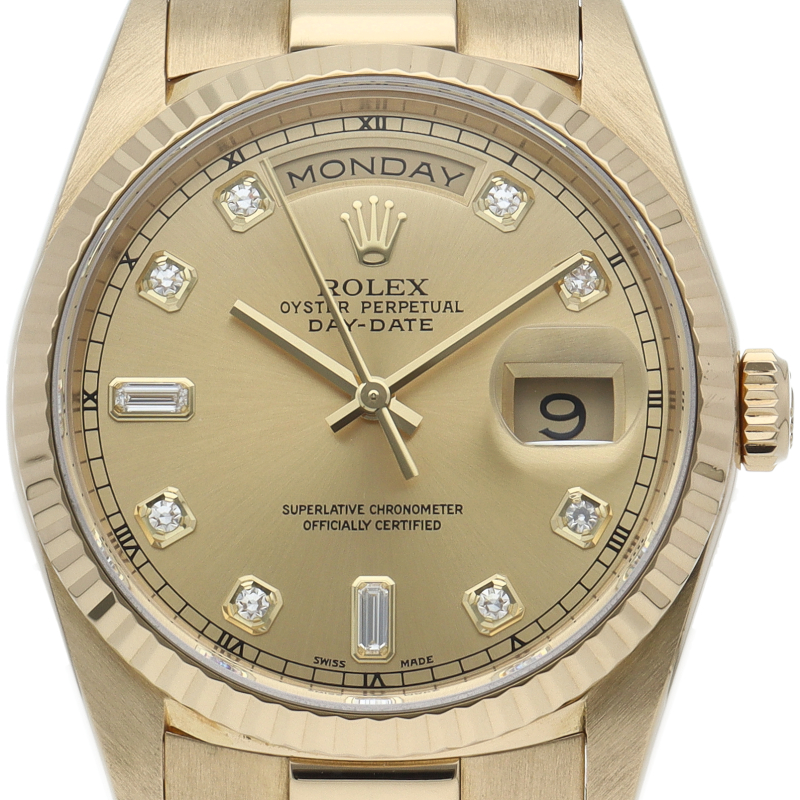 ロレックスのドレスウォッチの最高峰「デイデイト」。イエローゴールドを贅沢に使用した高級感溢れるステータスウォッチです。