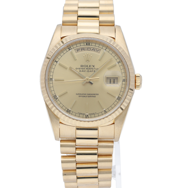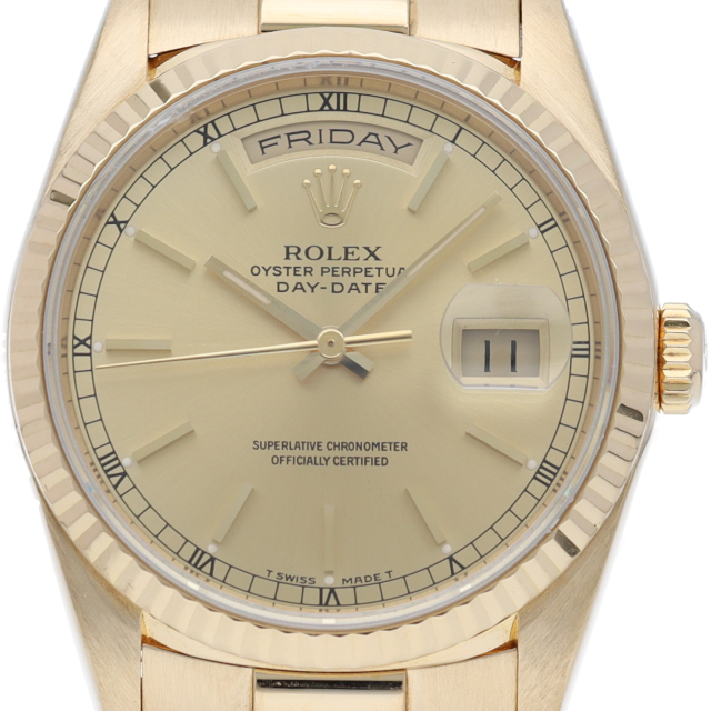 ロレックスのドレスウォッチの最高峰「デイデイト」。イエローゴールドを贅沢に使用した高級感溢れるステータスウォッチです。