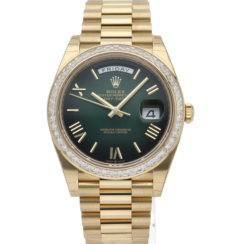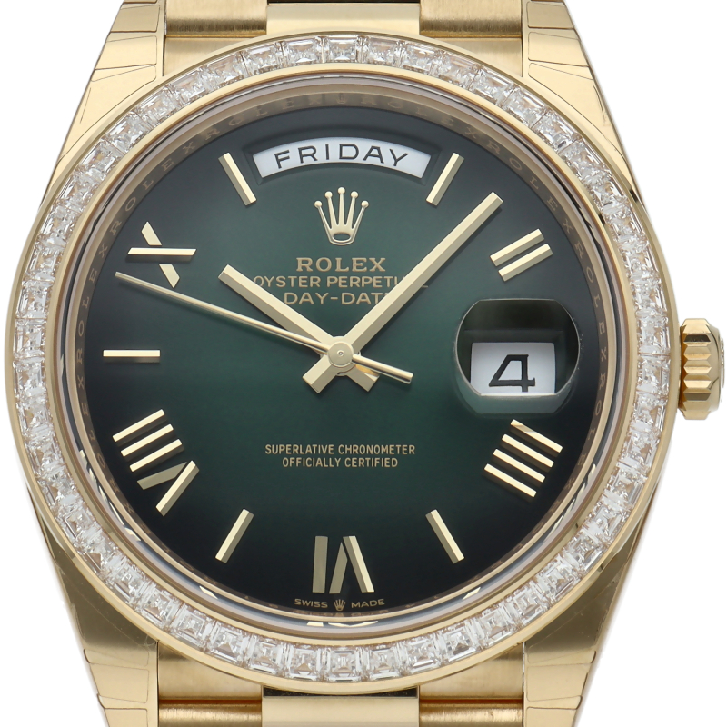 | 商品名 | デイデイト40 ウォッチ バケットダイヤベゼル グリーンオンブレ QRコードシール付 |