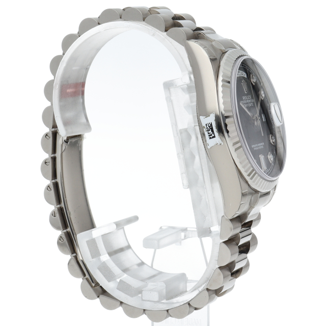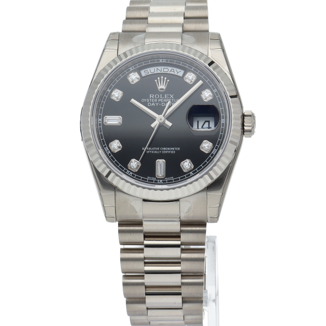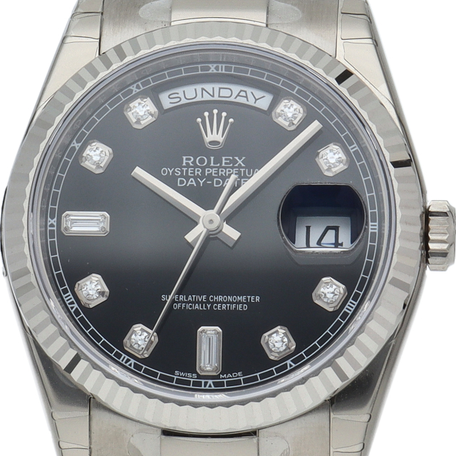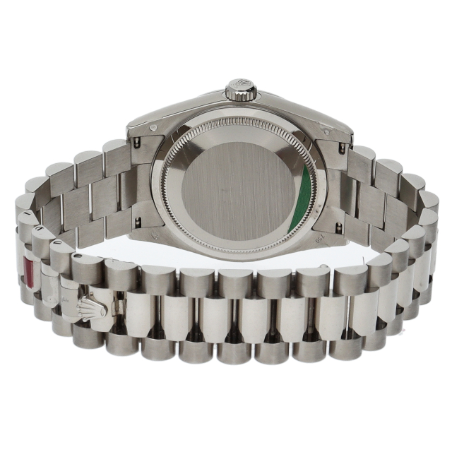 ロレックスのドレスウォッチの最高峰「デイデイト」。ホワイトゴールドを贅沢に使用したゴージャスさが人気のオススメの1本です。