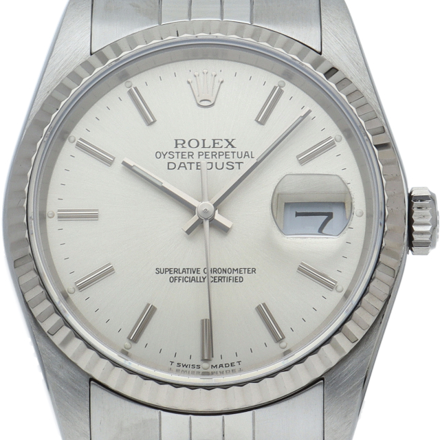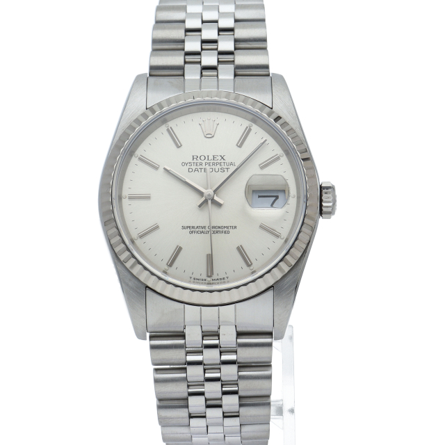 ロレックスのドレスウォッチの王道「デイトジャスト」。ホワイトゴールドとステンレスの組み合わせが上品で高級感を感じさせる1本です。
