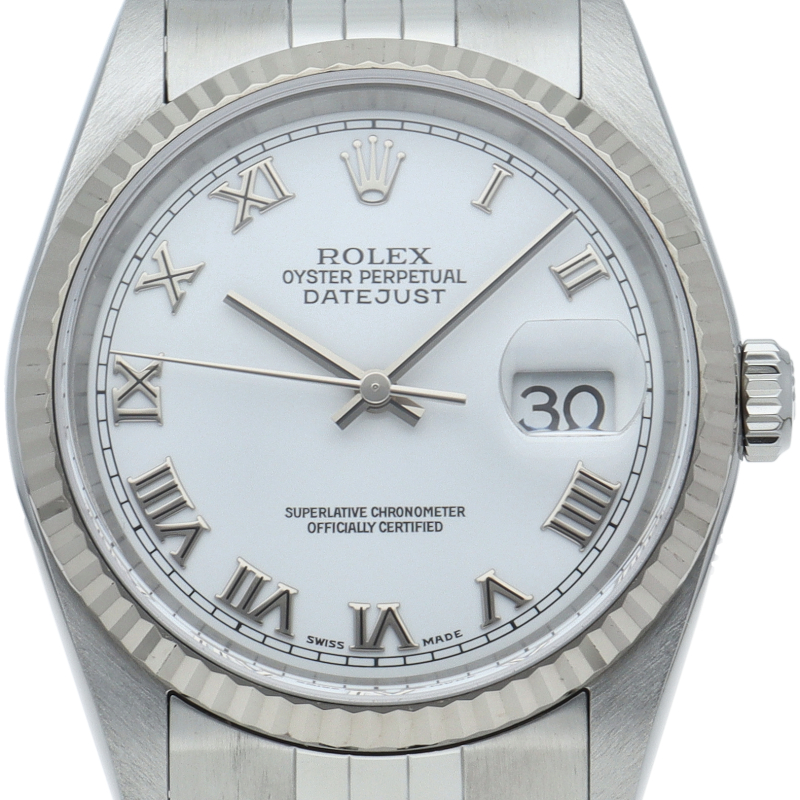 ロレックスのドレスウォッチの王道「デイトジャスト」。ホワイトゴールドとステンレスの組み合わせが高級感を感じさせる1本です。