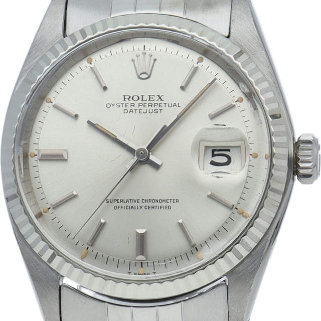 ロレックスドレスウォッチの王道「デイトジャスト」。ホワイトゴールドとステンレスの組み合わせが高級感を感じさせる1本です。プラスチック風防仕様。