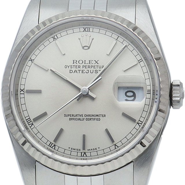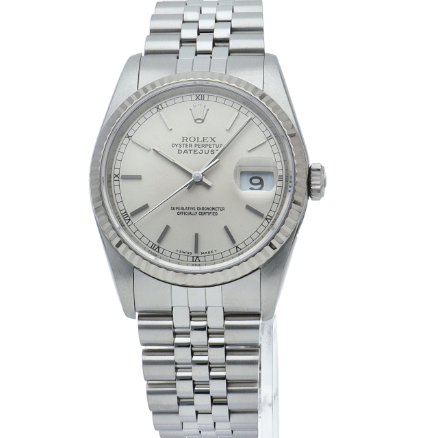 ロレックスのドレスウォッチの王道「デイトジャスト」。ホワイトゴールドとステンレスの組み合わせが高級感を感じさせる1本です。