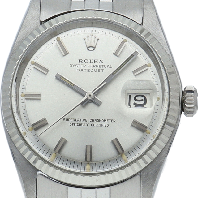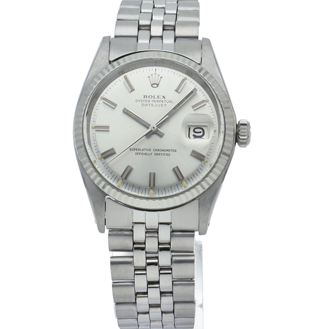 ロレックスドレスウォッチの王道「デイトジャスト」。ホワイトゴールドとステンレスの組み合わせが高級感を感じさせる1本です。プラスチック風防仕様。