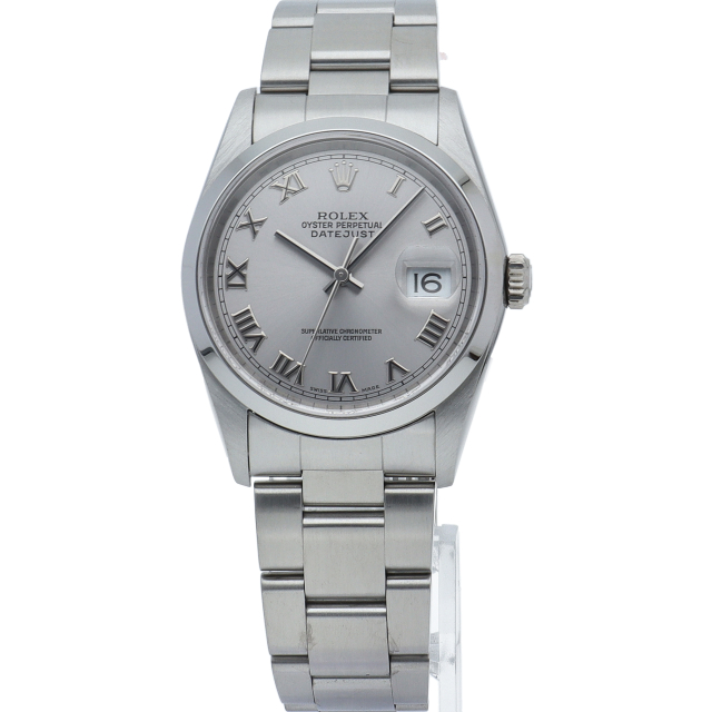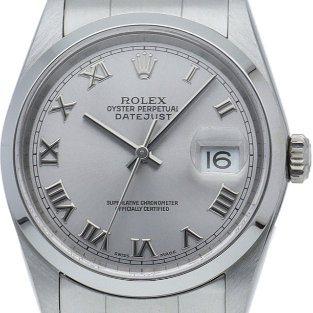 ロレックスのドレスウォッチの王道「デイトジャスト」。ポリッシュベゼルとデイト表示機能もついてスポーティーで人気度の高い1本です。