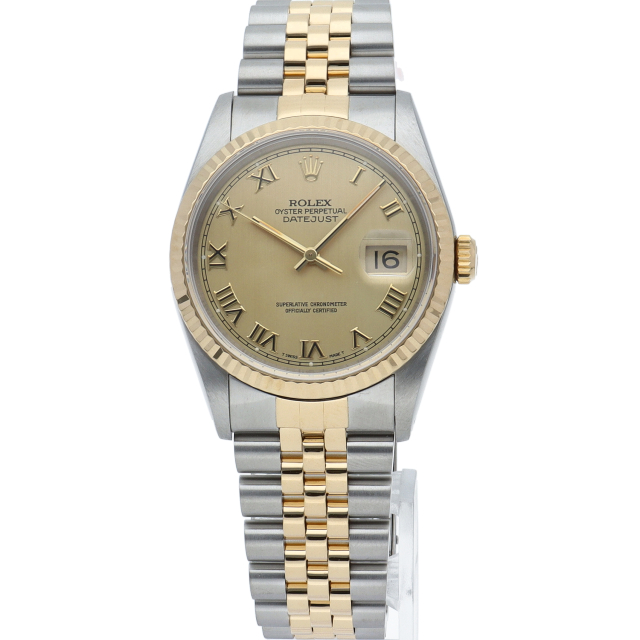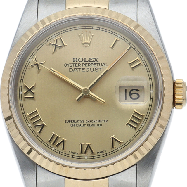 ロレックスのドレスウォッチの王道「デイトジャスト」。イエローゴールドとステンレスの組み合わせが上品で高級感を感じさせる1本です。