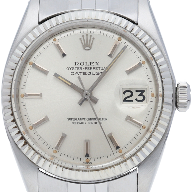 ロレックスのドレスウォッチの王道「デイトジャスト」。ホワイトゴールドとステンレスの組み合わせが高級感を感じさせる1本です。プラスチック風防仕様。初めてのアンティークウォッチをお探しの方にも大変オススメです。1601/4。