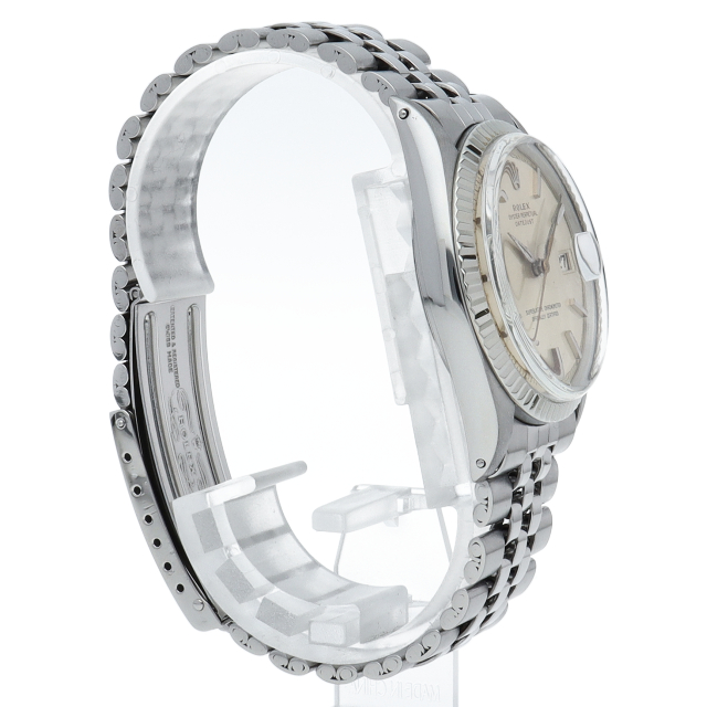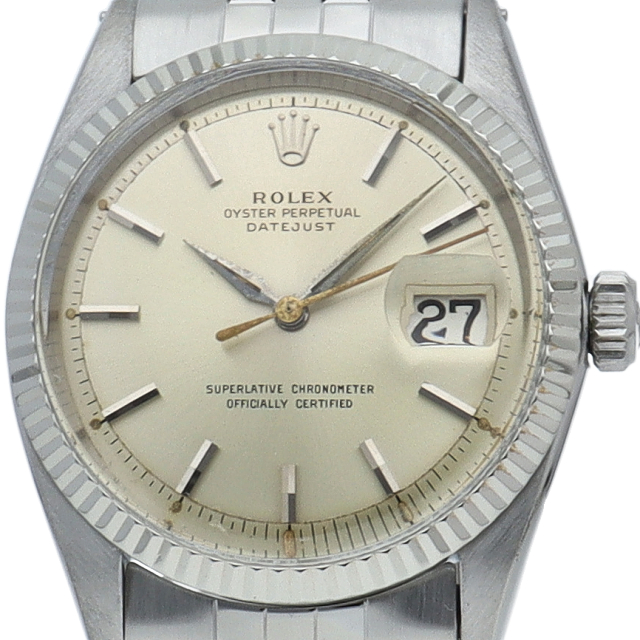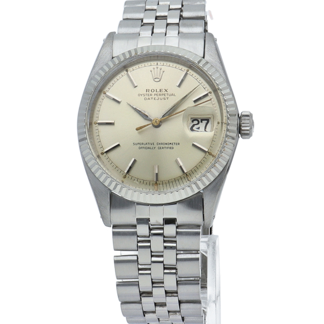 ロレックスのドレスウォッチの王道「デイトジャスト」。ホワイトゴールドとステンレスの組み合わせが高級感を感じさせる1本です。プラスチック風防仕様。