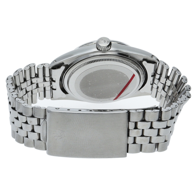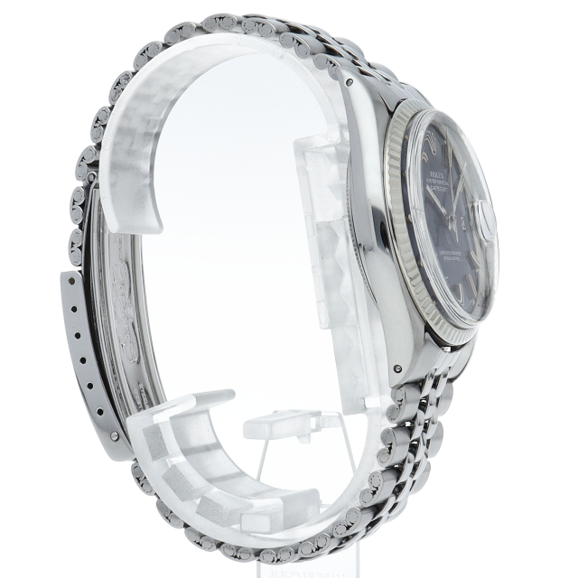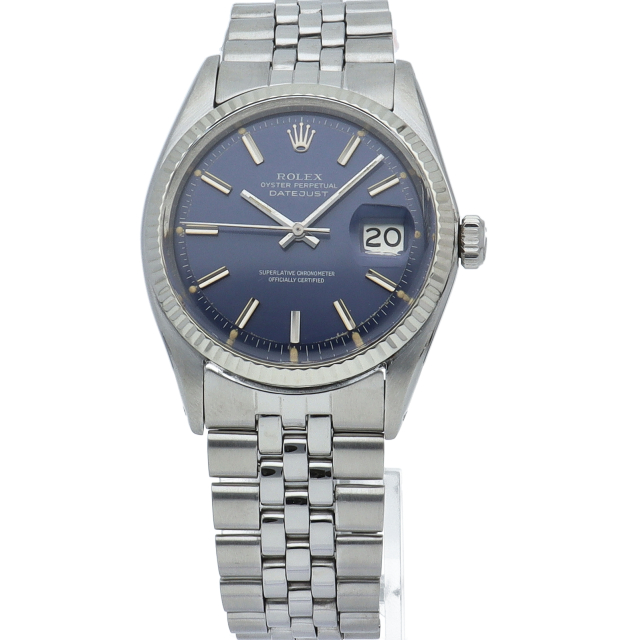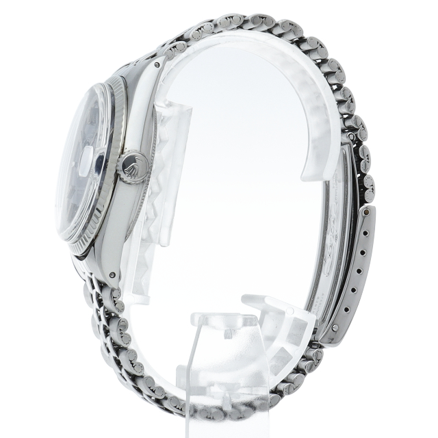 ロレックスドレスウォッチの王道「デイトジャスト」。ホワイトゴールドとステンレスの組み合わせが高級感を感じさせる1本です。プラスチック風防仕様。こちらはワイドボーイ、通常よりも幅の広い針とインデックスが通称「Fat boy」とも呼ばれる希少文字盤です。