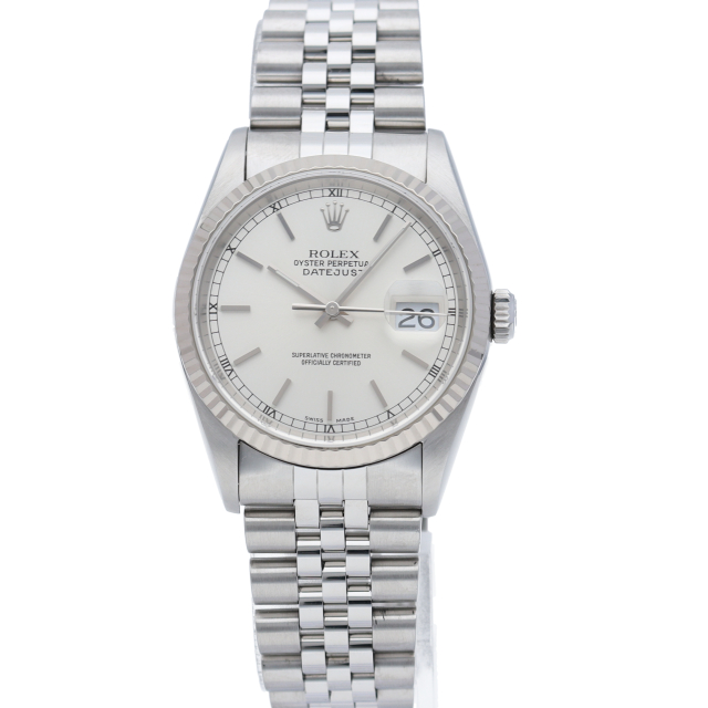 ロレックスのドレスウォッチの王道「デイトジャスト」。フルーテッドベゼルとデイト表示機能もついてスポーティーで人気度の高い1本です。