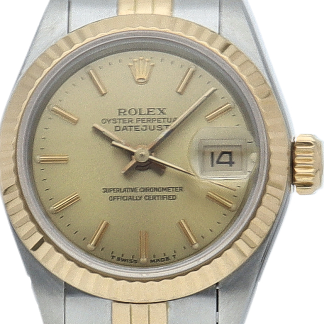 ロレックスのドレスウォッチの王道「デイトジャスト」。イエローゴールドとステンレスの組み合わせが上品で高級感を感じさせる1本です。