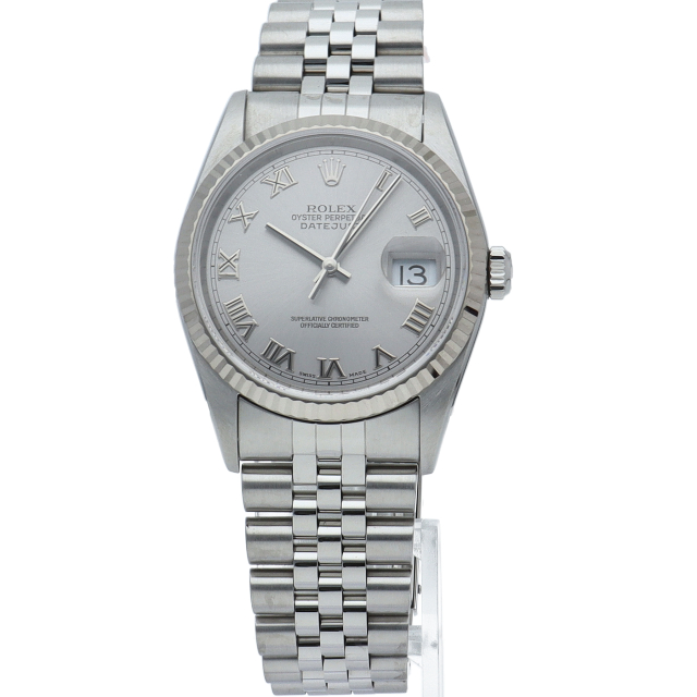 ロレックスのドレスウォッチの王道「デイトジャスト」。ホワイトゴールドとステンレスの組み合わせが上品で高級感を感じさせる1本です。