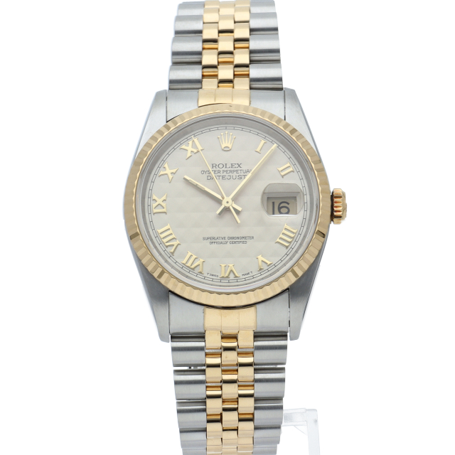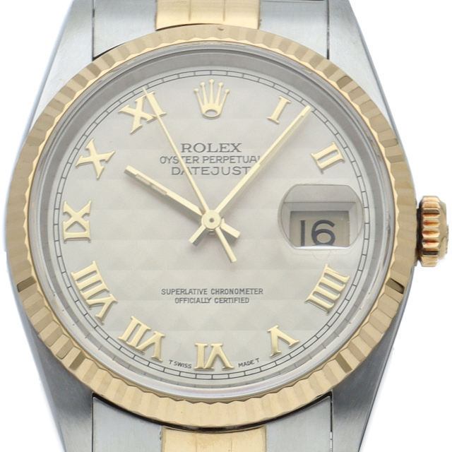 ロレックスのドレスウォッチの王道「デイトジャスト」。イエローゴールドとステンレスの組み合わせが上品で高級感を感じさせる1本です。