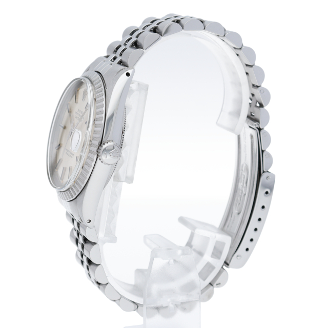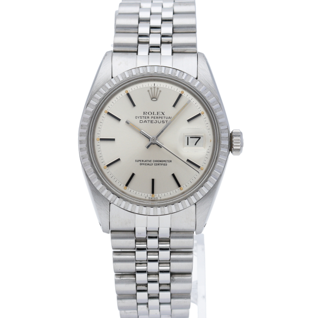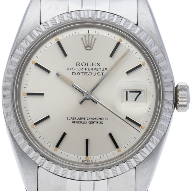 ロレックスのドレスウォッチの王道「デイトジャスト」。エンジンターンドベゼルのアンティーク感が逆に新鮮な1本。