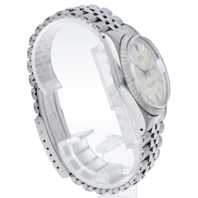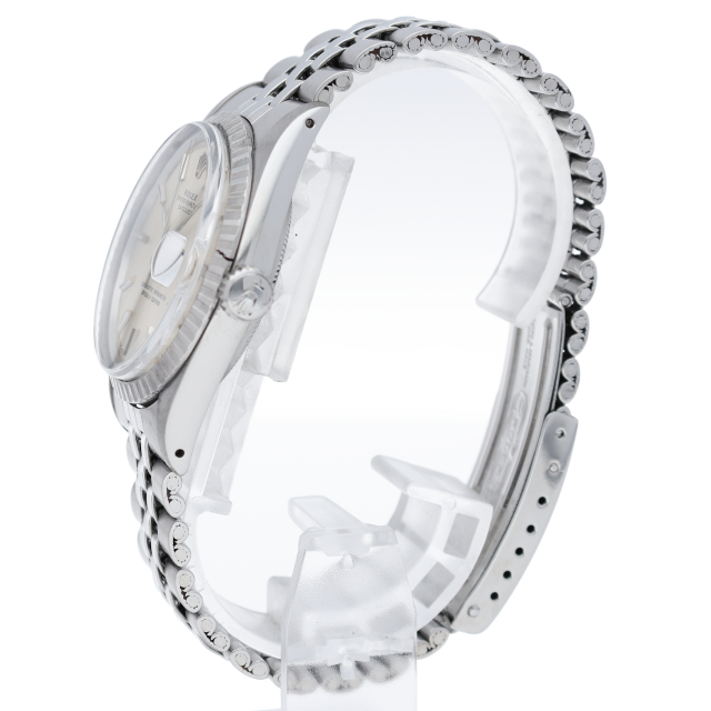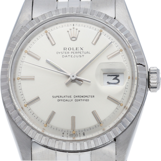 ロレックスのドレスウォッチの王道「デイトジャスト」。フルーテッドベゼルのアンティーク感が逆に新鮮な1本。6時位置にインデックス等に貴金属が使用されている事を表すシグママークが入った、希少性・高級感の非常に高い1本です。
