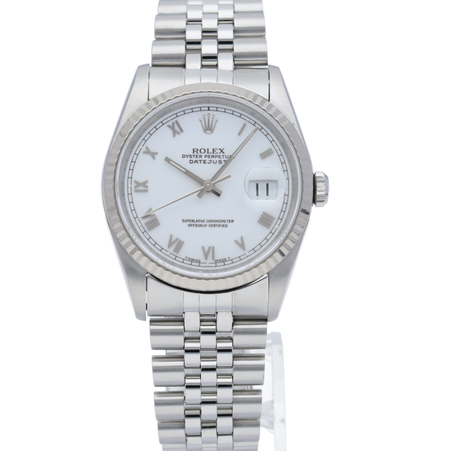ロレックスのドレスウォッチの王道「デイトジャスト」。ホワイトゴールドとステンレスの組み合わせが上品で高級感を感じさせる1本です。