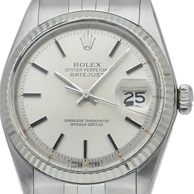 ロレックスのドレスウォッチの王道「デイトジャスト」。ホワイトゴールドとステンレスの組み合わせが高級感を感じさせる1本です。プラスチック風防仕様。初めてのアンティークウォッチをお探しの方にも大変オススメです。