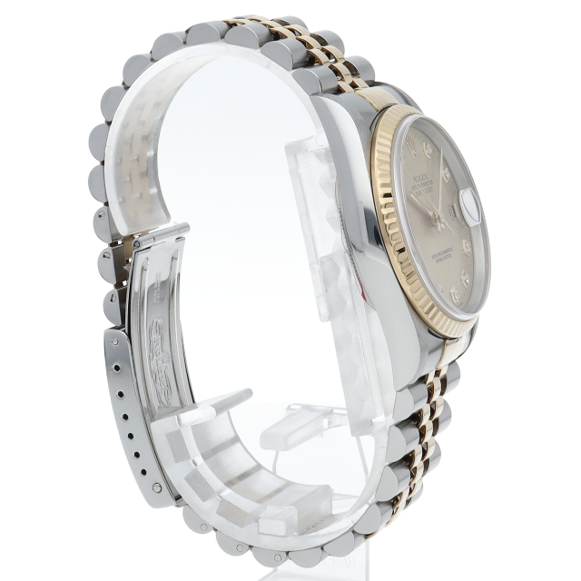 ロレックスのドレスウォッチで幅広い年齢層に愛されている「デイトジャスト」。イエローゴールドとステンレスのコンビ仕様に10Pダイヤが施されております。