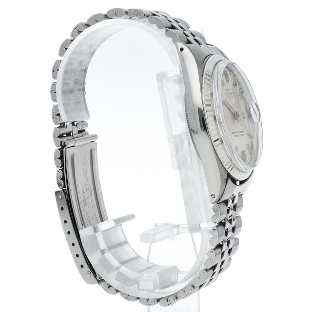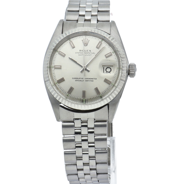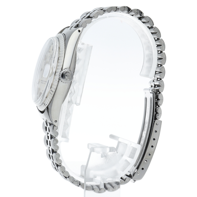 ロレックスのドレスウォッチの王道「デイトジャスト」。ホワイトゴールドとステンレスの組み合わせが高級感を感じさせる1本です。プラスチック風防仕様。
