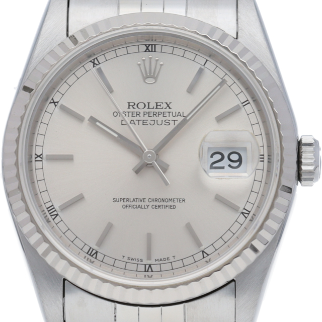 ロレックスのドレスウォッチの王道「デイトジャスト」。ホワイトゴールドとステンレスの組み合わせが上品で高級感を感じさせる1本です。