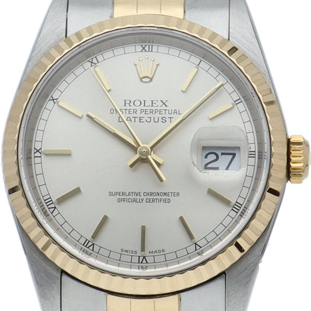 ロレックスのドレスウォッチで幅広い年齢層に愛されている「デイトジャスト」。イエローゴールドとステンレスのコンビ仕様です。