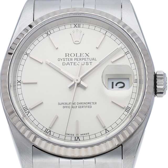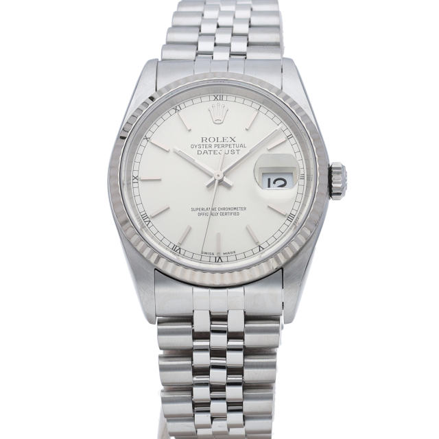 ロレックスのドレスウォッチの王道「デイトジャスト」。ホワイトゴールドとステンレスの組み合わせが上品で高級感を感じさせる1本です。