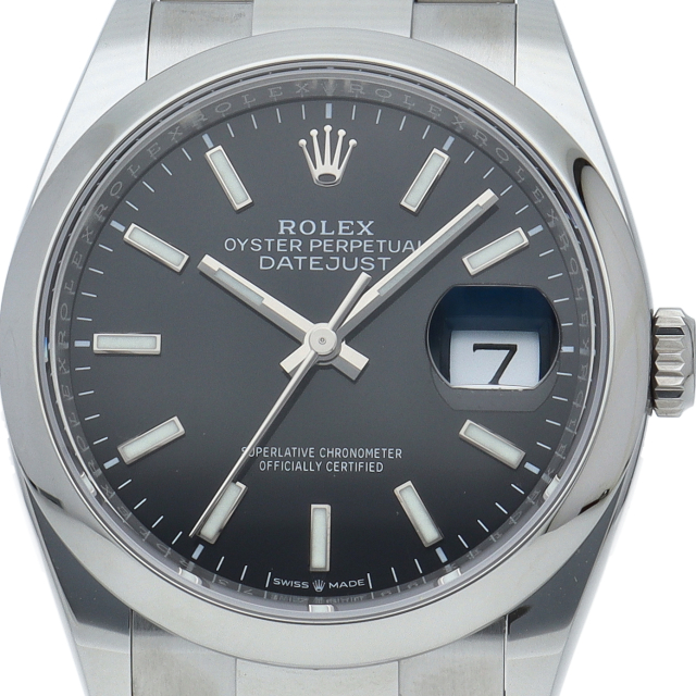 ケース径36mmのメンズモデル「デイトジャスト36」。14件もの特許を取得し、新開発の脱進機のクロナジーエスケープメントを装備した上で70時間ものロングパワーリザーブを確保した自社開発キャリバー3235を搭載します。