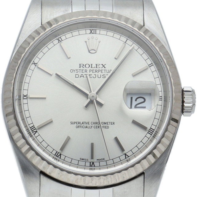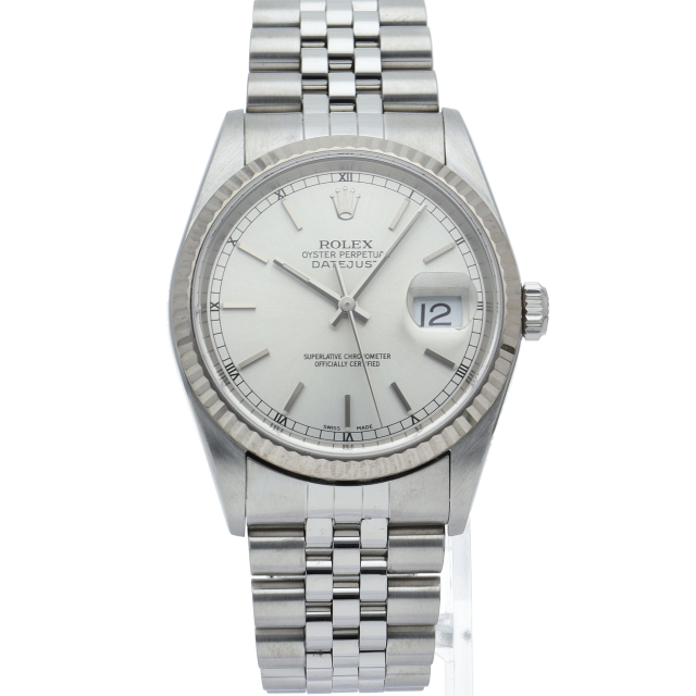 ロレックスのドレスウォッチの王道「デイトジャスト」。ホワイトゴールドとステンレスの組み合わせが上品で高級感を感じさせる1本です。