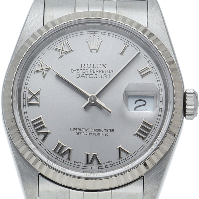 ロレックスのドレスウォッチの王道「デイトジャスト」。ホワイトゴールドとステンレスの組み合わせが上品で高級感を感じさせる1本です。