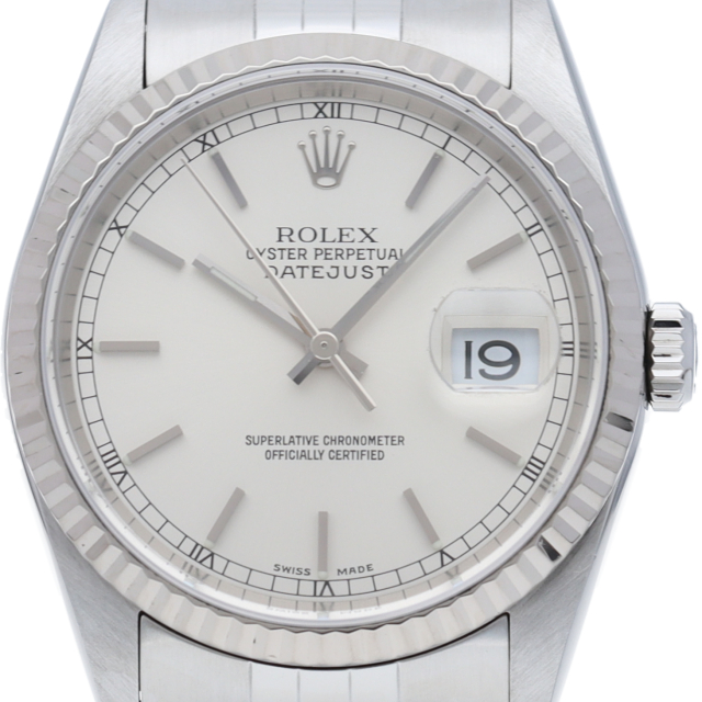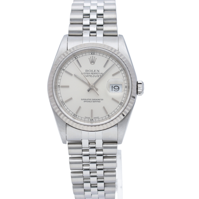 ロレックスのドレスウォッチの王道「デイトジャスト」。ホワイトゴールドとステンレスの組み合わせが上品で高級感を感じさせる1本です。