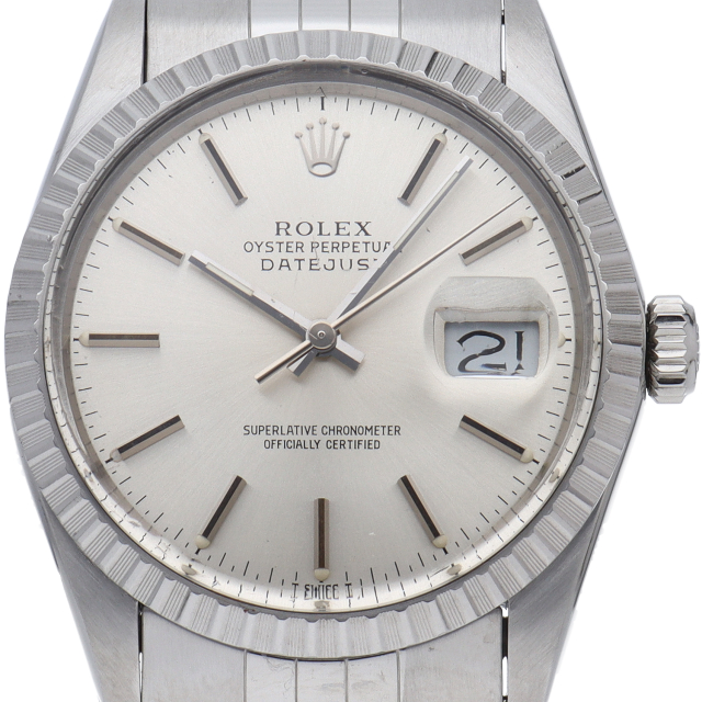 前作の1603と違い、リューズ操作による日付のクイックチェンジ機能が付いています。エンジンターンドベゼルやプラスチック風防を備え、旧作ならではの味わいがあるモデルです。