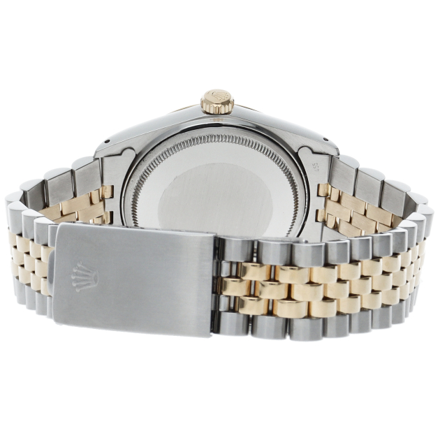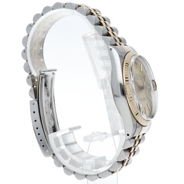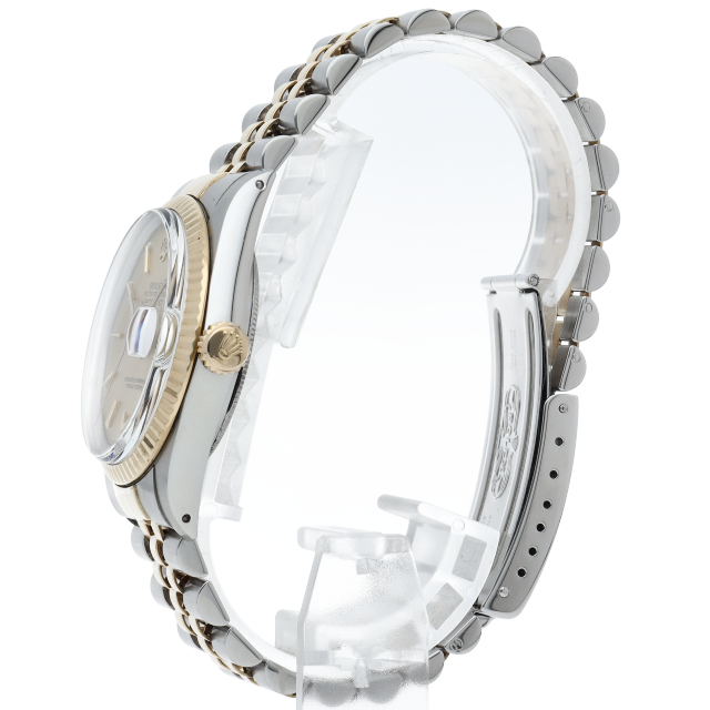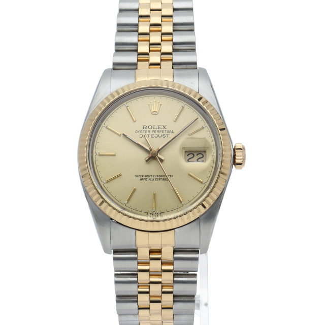 ロレックスドレスウォッチの王道「デイトジャスト」。イエローゴールドとステンレスの組み合わせが高級感を感じさせる1本です。プラスチック風防仕様。