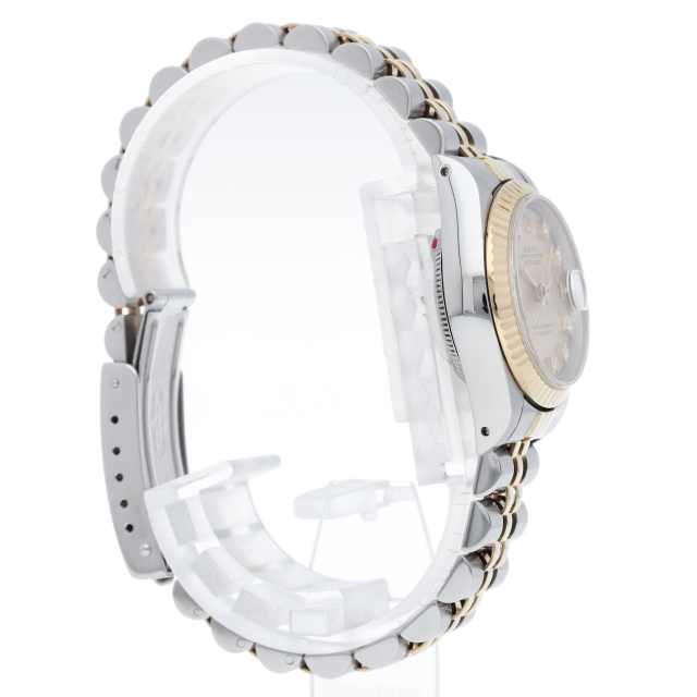 ロレックスのドレスウォッチで幅広い年齢層に愛されているデイトジャスト。イエローゴールドとステンレスのコンビ仕様に10Pダイヤが施され豪華です。