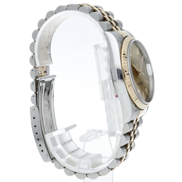 ロレックスのドレスウォッチの王道「デイトジャスト」。イエローゴールドとステンレスの組み合わせが上品で高級感を感じさせる1本です。