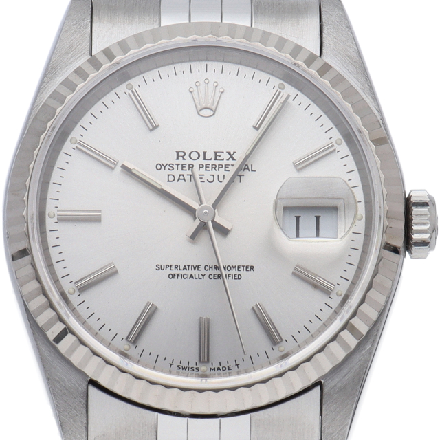 ロレックスのドレスウォッチの王道「デイトジャスト」。ホワイトゴールドとステンレスの組み合わせが上品で高級感を感じさせる1本です。