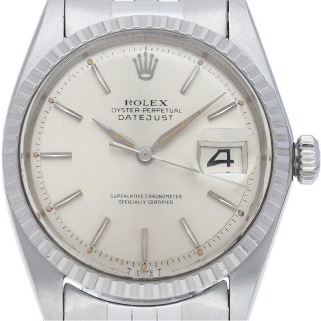 ロレックスのドレスウォッチの王道「デイトジャスト」。フルーテッドベゼルのアンティーク感が逆に新鮮な1本。