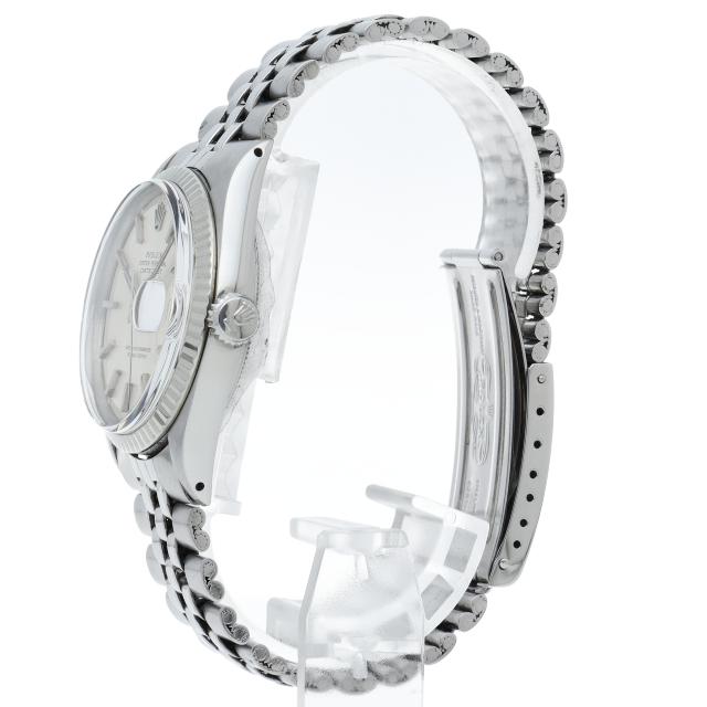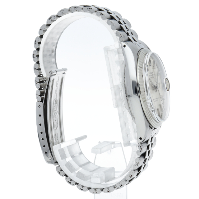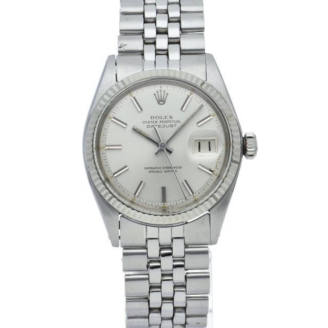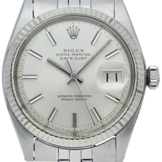 ロレックスのドレスウォッチの王道「デイトジャスト」。ホワイトゴールドとステンレスの組み合わせが高級感を感じさせる1本です。プラスチック風防仕様。クロノメーター表記の中央の空間が揃っている「センタースプリット」となっています。