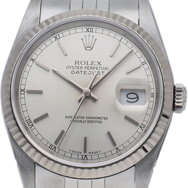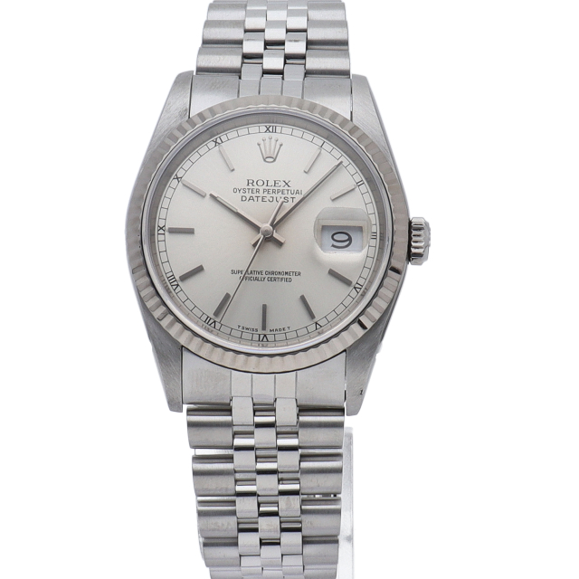 ロレックスのドレスウォッチの王道「デイトジャスト」。ホワイトゴールドとステンレスの組み合わせが高級感を感じさせる1本です。