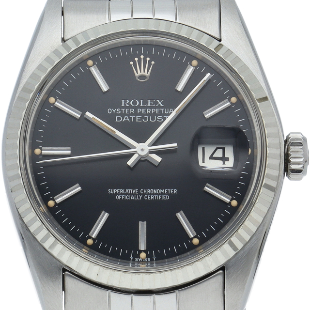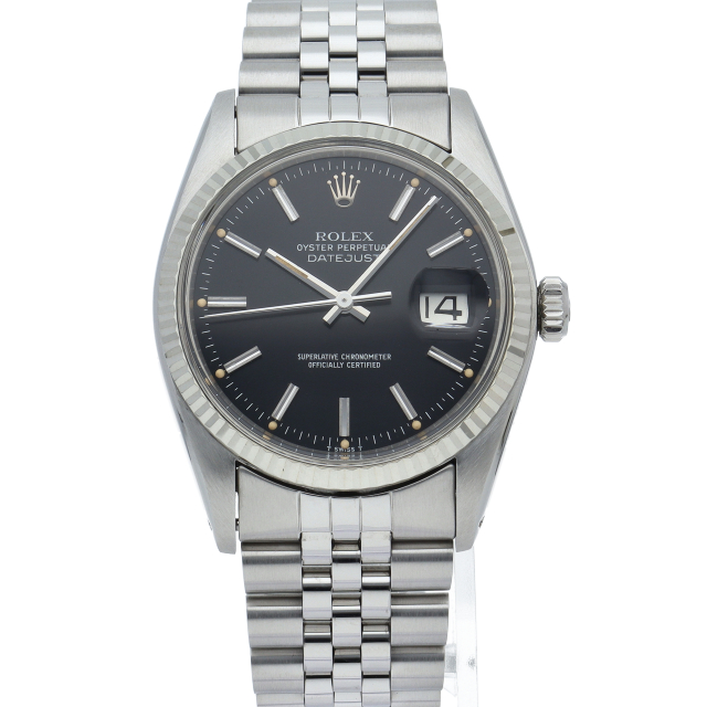 ロレックスのドレスウォッチの王道「デイトジャスト」。ホワイトゴールドとステンレスの組み合わせが高級感を感じさせる1本です。プラスチック風防仕様。