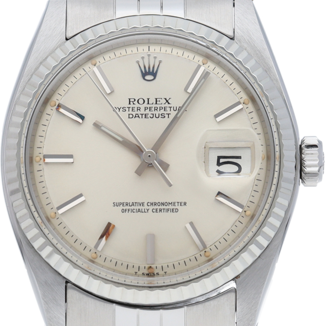 ロレックスドレスウォッチの王道「デイトジャスト」。ホワイトゴールドとステンレスの組み合わせが高級感を感じさせる1本です。プラスチック風防仕様。
