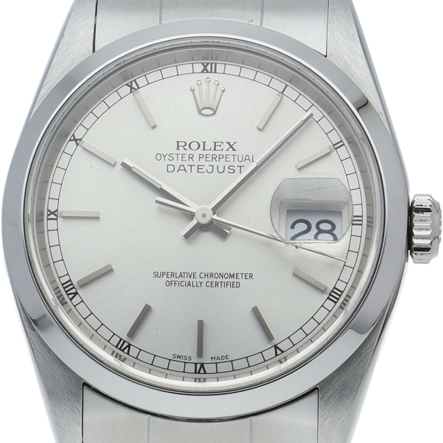 ロレックスのドレスウォッチの王道「デイトジャスト」。ポリッシュベゼルとデイト表示機能もついてスポーティーで人気度の高い1本です。