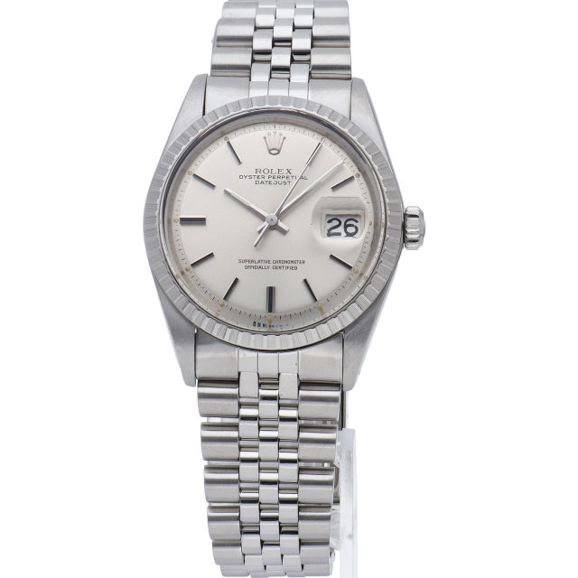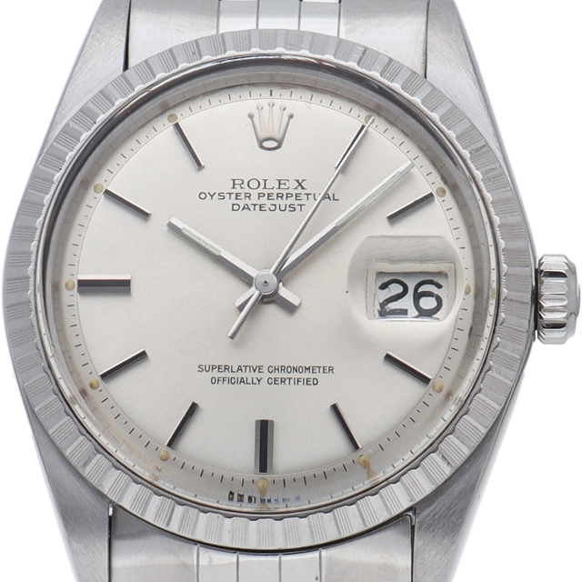 ロレックスのドレスウォッチの王道「デイトジャスト」。ホワイトゴールドとステンレスの組み合わせが高級感を感じさせる1本です。プラスチック風防仕様。クロノメーター表記の中央の空間が揃っている「センタースプリット」となっています。