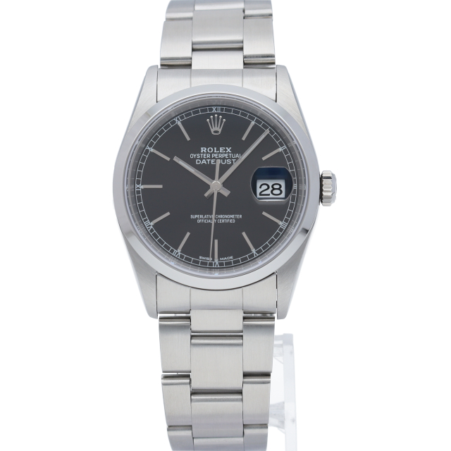 ロレックスのドレスウォッチの王道「デイトジャスト」。ポリッシュベゼルとデイト表示機能もついてスポーティーで人気度の高い1本です。