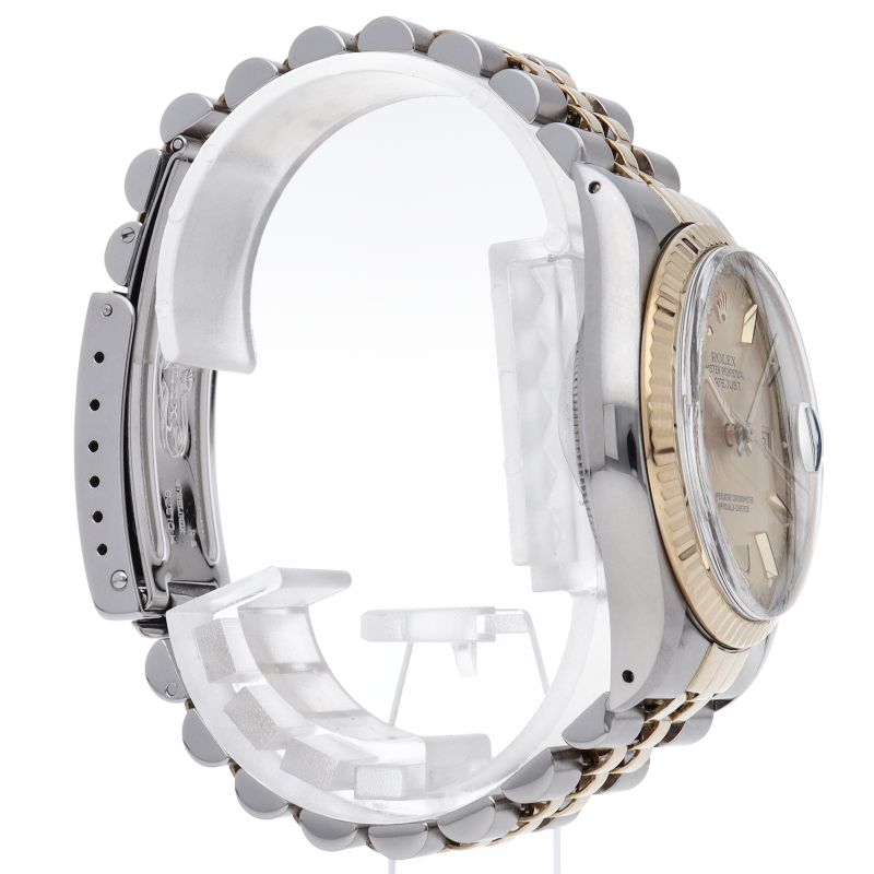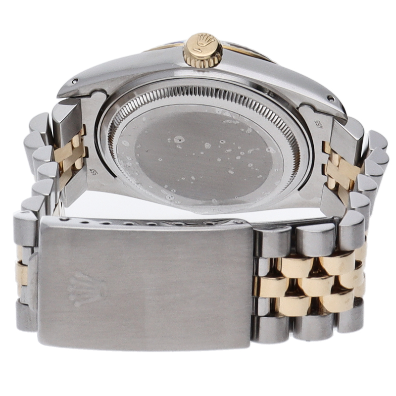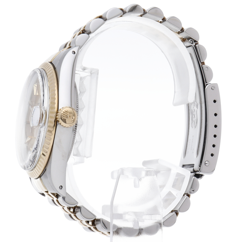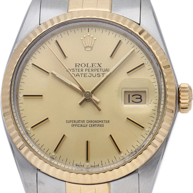 ロレックスドレスウォッチの王道「デイトジャスト」。イエローゴールドとステンレスの組み合わせが高級感を感じさせる1本です。プラスチック風防仕様。