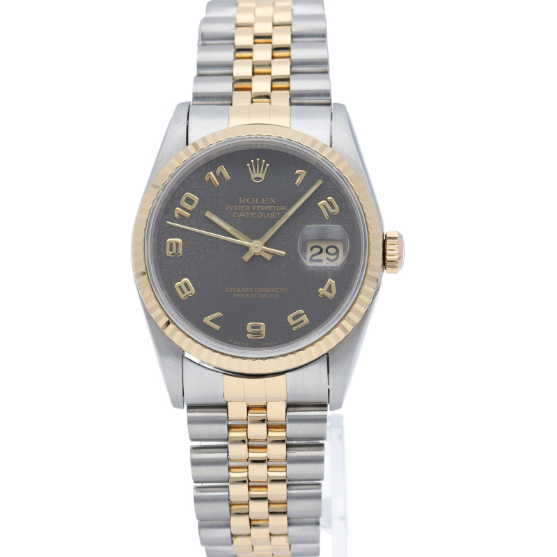 ロレックスのドレスウォッチの王道「デイトジャスト」。イエローゴールドとステンレスの組み合わせが上品で高級感を感じさせる1本です。
