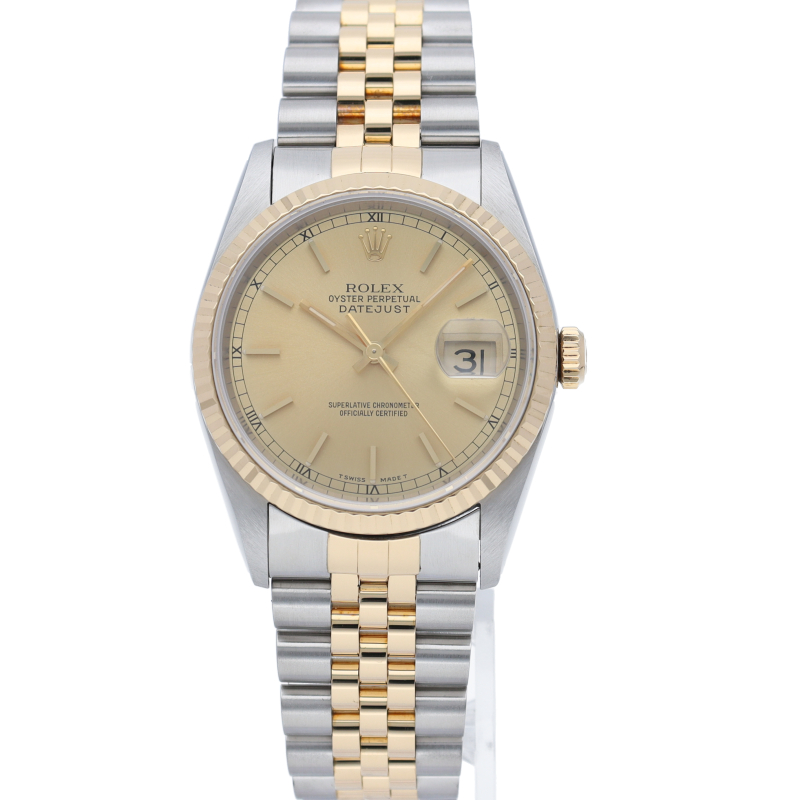 ロレックスのドレスウォッチの王道「デイトジャスト」。イエローゴールドとステンレスの組み合わせが上品で高級感を感じさせる1本です。
