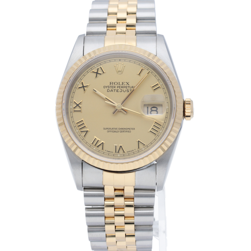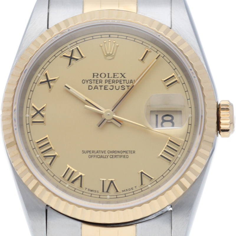 ロレックスのドレスウォッチの王道「デイトジャスト」。イエローゴールドとステンレスの組み合わせが上品で高級感を感じさせる1本です。