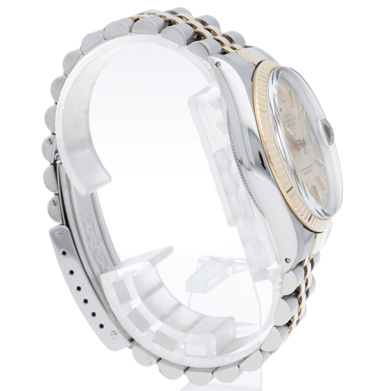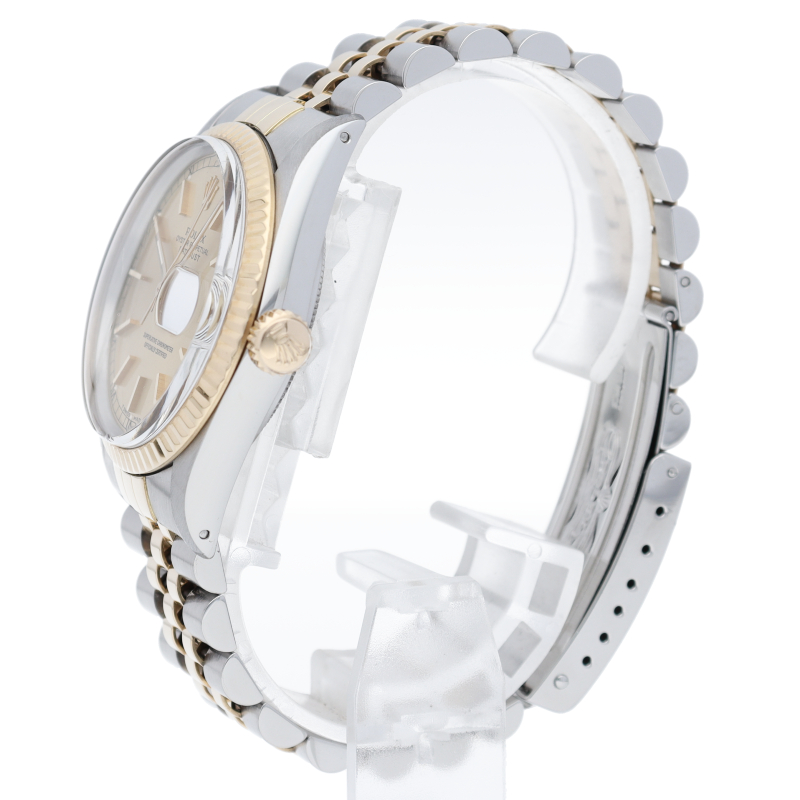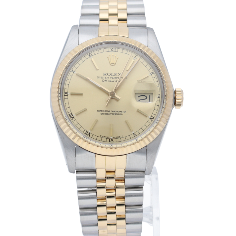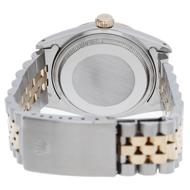 ロレックスドレスウォッチの王道「デイトジャスト」。イエローゴールドとステンレスの組み合わせが高級感を感じさせる1本です。プラスチック風防仕様。