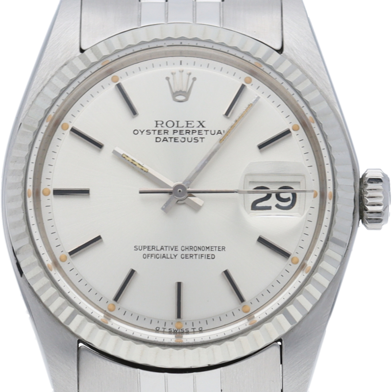 ロレックスドレスウォッチの王道「デイトジャスト」。ホワイトゴールドとステンレスの組み合わせが高級感を感じさせる1本です。プラスチック風防仕様。